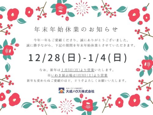 マイホームが欲しくなった主なきっかけは? Question 01 マイホームが欲しくなった主なきっかけは? ライフスタイルの変化 広い家に住みたい 資金の準備ができた そろそろ新しい家が欲しい SCROLL \まずはここから/ 最適マイホーム診断チャート 住まいのことなら、ぜんぶ大成ハウス。 注文住宅を建てる 分譲・中古住宅を買う 土地を探す 不動産を売る・住み替える リフォームする 展示場へ行く EVENT モデルハウス・イベントへ行く 一覧を見る 外観・内装・間取り・設備も選べる 注文住宅を建てる DESIGN デザイン 詳しく見る VARIATION バリエーションの豊富さ 詳しく見る PERFORMANCE パフォーマンスの良さ 詳しく見る WORKS 施工事例 気になる#ハッシュタグで施工事例を絞り込みできます。 #GLホーム #YAMADA HOMES #YUCACOの家 #大成ハウス #シューズクローク#ランドリールーム#洗面台#パントリー#アクセントクロス#ニッチ#ウォークインクローゼット#ワークスペース#ナチュラルテイスト#サンルーム 快適空間で永らく住まう 全館空調搭載を搭載したナチュラルテイストのお家 詳しく見る #ウォークインクローゼット #タタミルーム #ナチュラルテイスト #ニッチ #ランドリールーム #リビングイン階段 #ワークスペース #全館空調 【会津若松市】木目調がかわいいナチュラルテイストのお家 詳しく見る #ナチュラルテイスト #リビングイン階段 #下がり天井 #対面キッチン #小上がり #書斎スペース #水回り動線 【会津若松市】クールなシンプルモダンのお家 詳しく見る #アクセントクロス #タタミスペース #リビングイン階段 #下がり天井 【喜多方市】開放感のある全館空調のお家 詳しく見る #アイランドキッチン #ランドリールーム #リビング階段 #全館空調 #吹抜け #小上がり 【会津若松市】生活動線にこだわった大人かわいい全館空調のお家 詳しく見る #アクセントクロス #シンプル #フレンチスタイル #大人かわいい #生活動線 【会津若松市】まるで夢の国のようなお家 詳しく見る #キャラクター #ディズニー #外構 #水回り #洋風 #海外風 【喜多方市】ウッディで大人かわいいお家 詳しく見る #ウォークインクローゼット #タイル調 #ディズニー #ヘリンボーン #大人かわいい #家事動線 #木目 #水回り動線 【会津若松市】統一感のあるフレンチスタイルのお家 詳しく見る #ウォークインクローゼット #オープンキッチン #オープンクローゼット #シンプル #タタミルーム #ランドリールーム #対面式キッチン 【会津若松市】回遊できる生活動線や収納スペースの配置にこだわったお家 詳しく見る #アクセントクロス #ウォークインクローゼット #オープンキッチン #クローゼット #サンルーム #シューズクローク #トイレ #ナチュラルテイスト #ファミリークローク #ランドリールーム #ワークスペース #回遊動線 #家事ラク動線 #棚 #水回り動線 #洗面台 #玄関収納 【会津若松市】素材感を活かした心地の良いデザインのお家 詳しく見る #アクセントクロス #ウォークインクローゼット #オープンキッチン #クローゼット #ナチュラルテイスト #ワークスペース #和室 #家事動線 #書斎 #洗面台 一覧をみる 豊富な物件数と高い品質 分譲・中古住宅を買う 土地探し 設備選び 家事動線 時間や手間を省いて、マイホームを持つなら 人気分譲地・中古住宅が多数。 詳しく見る 独自のネットワークと長年のノウハウ 土地を探す 希望の地域に土地がない 希望額で土地がない 土地の探し方が分からない 土地探しのつまずき大成ハウスで解決 常時30件以上の土地情報をご用意 詳しく見る LAND FOR SALE オススメ土地情報 会津若松市 会津若松市門田町竹之元分譲地 完売いたしました! 会津若松市 【会津若松市川原町】グッドライフタウン新横町11区画新分譲地🏡造成スタート!販売予約受付中! 区画数11販売価格934万円~建築条件建築条件付き 会津若松市 会津若松市東山町分譲地 完売いたしました! 会津若松市 【会津若松市明和町】グッドライフタウン明和 7区画新分譲地好評販売中! 区画数7販売価格979万円~建築条件建築条件付き 会津若松市 【会津若松市門田町日吉】グッドライフタウン日吉 7区画新分譲地 好評販売中です! 区画数7販売価格897万円~建築条件建築条件付き 喜多方市 【喜多方市御殿場一丁目】グッドライフタウン御殿場 3区画分譲地🏡好評販売中! 区画数3販売価格565万円~建築条件建築条件付き 会津若松市 【会津若松市城前】2区画宅地 好評販売中! 区画数2販売価格1150万円建築条件建築条件付き 会津若松市 【会津若松市門田町飯寺】2区画宅地 好評販売中! 区画数2販売価格①930万円 ②980万円建築条件建築条件付き 会津若松市 【会津若松市新横町】グッドライフタウン新横町6区画分譲地🏡残りわずかとなりました! 区画数6販売価格955万円~建築条件建築条件付き 【会津坂下町中岩田】グッドライフタウン中岩田10区画 モデルハウス好評販売中🏡 区画数10販売価格722万円~建築条件建築条件付き 一覧をみる 早く、高値で資産を売却 不動産を売る・家を住み替える 詳しく見る 我が家