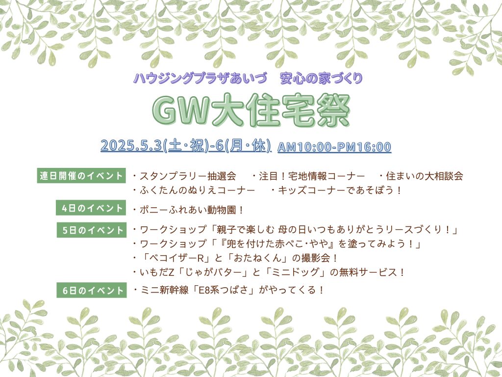 ハウジングプラザあいづでは