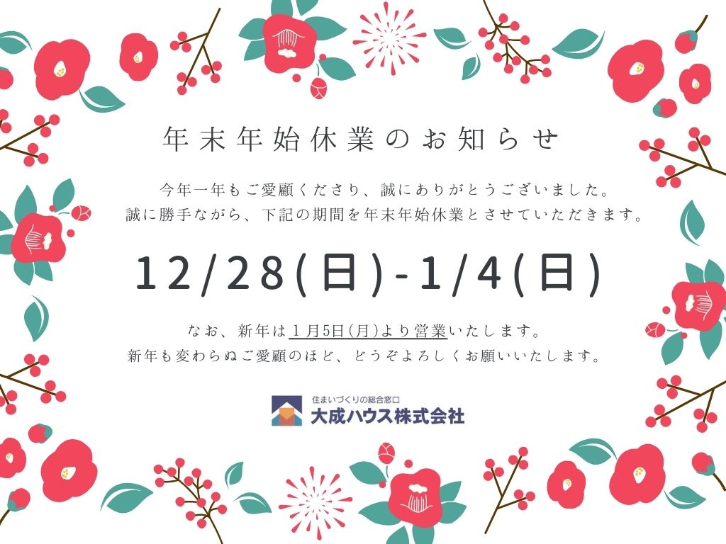 当社の年末年始の休業日に関しまして、下記の通りお知らせいたします。