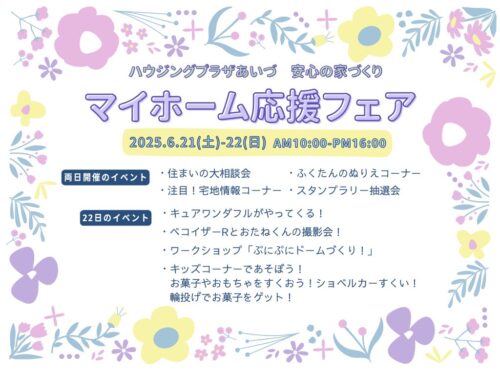 2025年6月21日(土)–22日(日)の2日間、 ハウジングプラザあいづでは 『安心の家づくり マイホーム応
